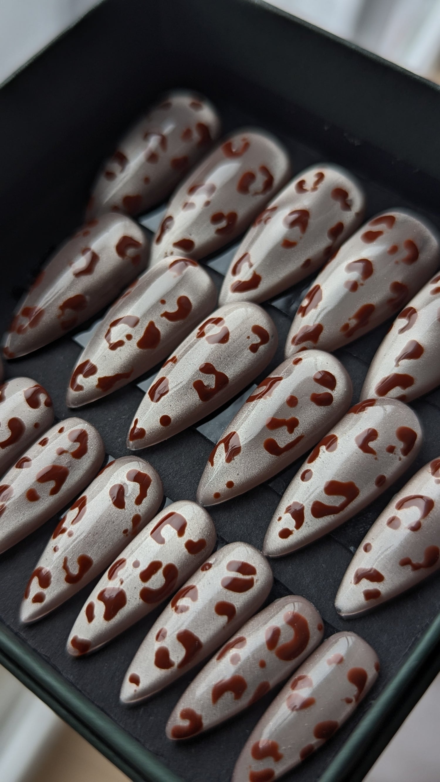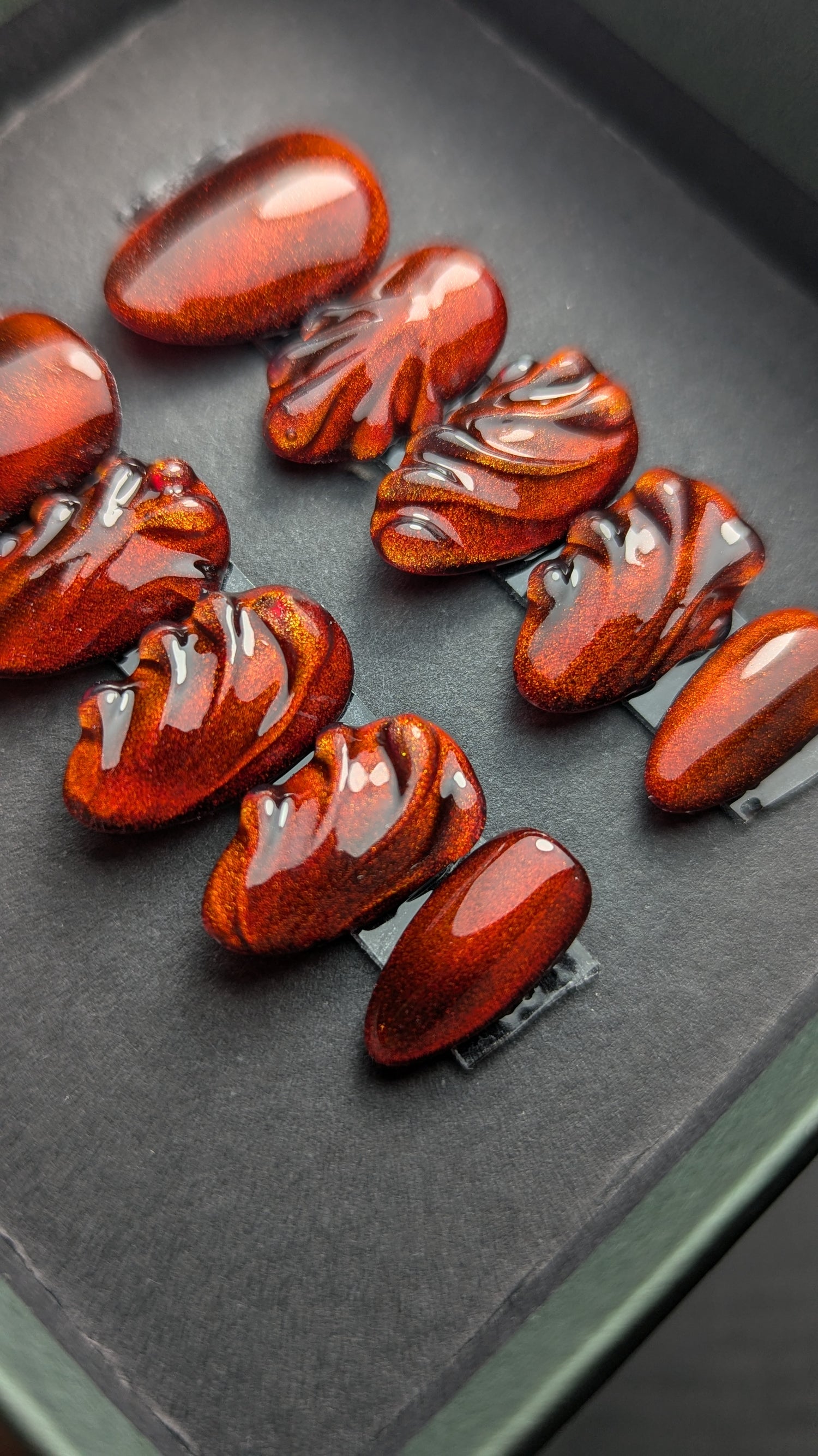 Press-on nails effets chromés et pailletés.